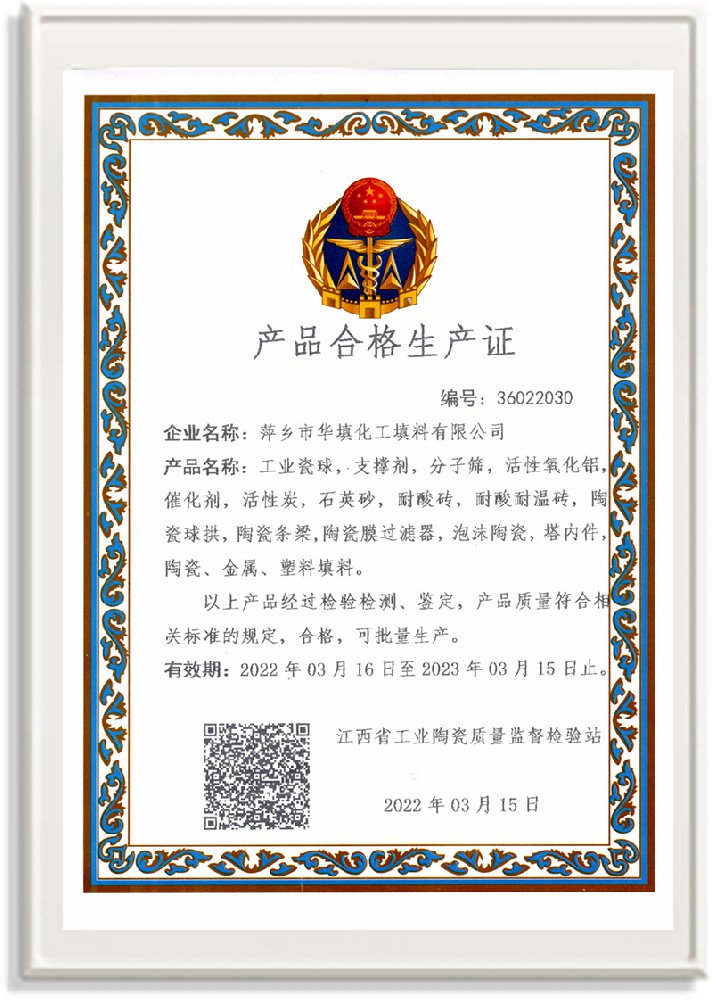 萍鄉(xiāng)市華填化工填料有限公司,位于320國道、109國道、浙贛鐵路、昌金高速公路貫穿其中,交通便利,是江西西部一顆燦爛明珠,創(chuàng)建于20世紀70年代初期,是中國石油天然氣股份有限公司“能源一號網(wǎng)”會員企業(yè)、中國石化物資采購電子商務網(wǎng)絡和中國海洋石油總公司采辦業(yè)務系統(tǒng)成員單位,是上海大學江西材料基因組工程產(chǎn)業(yè)研究院工業(yè)陶瓷產(chǎn)業(yè)創(chuàng)新聯(lián)盟基地,且通過ISO9001:2015質(zhì)量管理體系、ISO14001:2015環(huán)境管理體系、ISO45001:2018職業(yè)健康安全管理體系認證的化工填料生產(chǎn)企業(yè)。公司擁有陶瓷、塑料、金屬填料、催化劑、活性氧化鋁、分子篩等產(chǎn)品生產(chǎn)線,現(xiàn)有固定資產(chǎn)3616萬元,占地面積3.8萬平方米。公司具有悠久的生產(chǎn)歷史、雄厚的技術力量和先進的生產(chǎn)工藝設備,可生產(chǎn)工業(yè)瓷球(支撐劑)、陶瓷、金屬、塑料質(zhì)的規(guī)整、散堆化工填料及分子篩、催化劑、生化濾料、活性氧化鋁、石化助劑、活性炭、環(huán)保材料、耐火材料等系列的200多種規(guī)格型號產(chǎn)品。